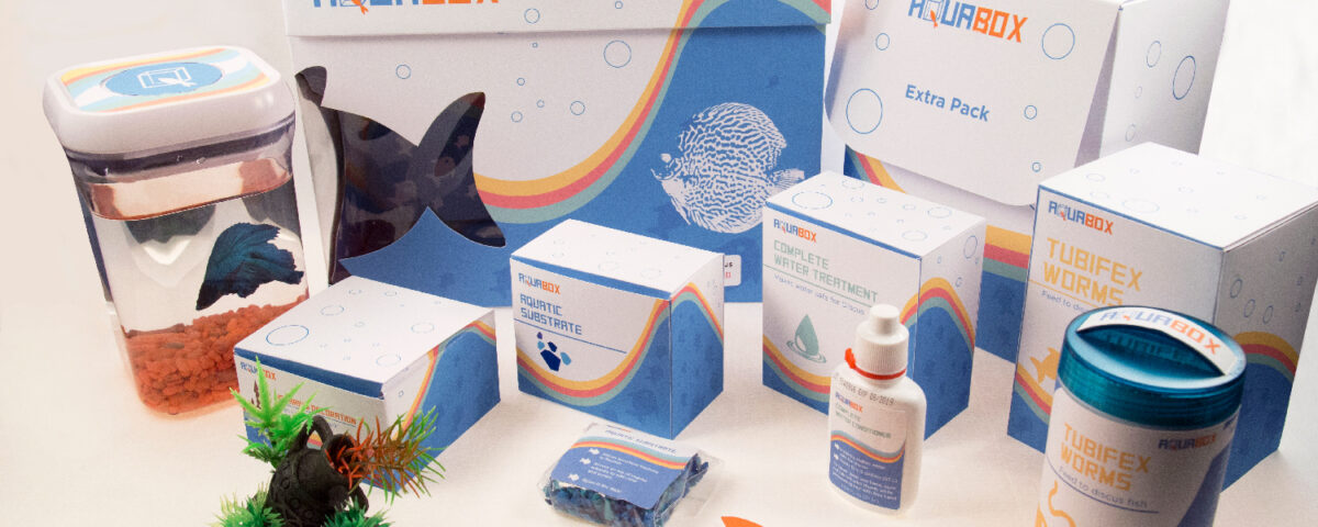 Aqua Box is a subscription box based company. They ship exotic freshwater fish to customers who subscribe to their service. The packaging has a large diecut symbol of a fish to allow the viewer to see the fish inside. This packaging comes with all that